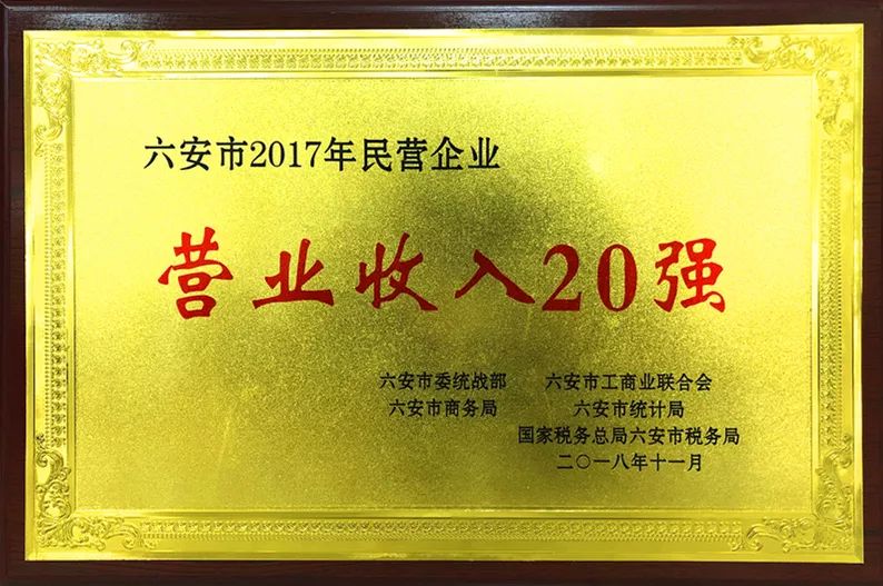 我公司獲六安民營(yíng)企業(yè)“二十強(qiáng)”稱號(hào)