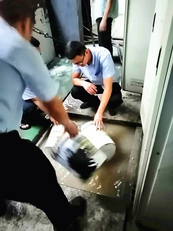 斷電后,車間支部一邊組織無工作安排的職工離開生產(chǎn)崗位,一邊組織黨員職工開展自救。黨員們積極核查設(shè)備受災(zāi)情況,全力以赴搶排積水,盡可能減少災(zāi)害帶來的損失。