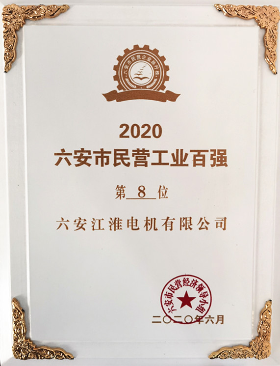 10月23日下午,2020年六安市民營企業(yè)行業(yè)排序榜單發(fā)布會召開,六安江淮電機有限公司位列民營工業(yè)百強。